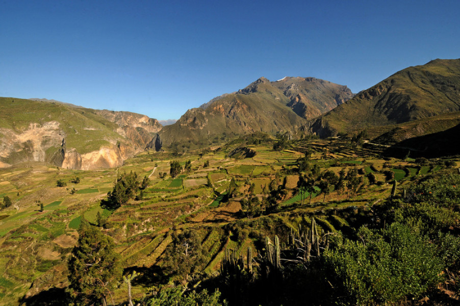 Sie werden am Morgen in Ihrem Hotel abgeholt und fahren in den mehr als 100km langen Colca Canyon PEAK002, der an seiner tiefsten Stelle 3.400m misst. Unterwegs halten Sie im Nationalpark Aguada Blanca, wo Vicuñas und Alpakas zu Fotomotiven werden. Sie erreichen den höchsten Punkt der Fahrt, den Aussichtspunkt der Vulkane auf 4.910m. Hier bietet sich ein atemberaubender Blick auf die schneebedeckten Gipfel des Misti, Ampato und Sabancaya.