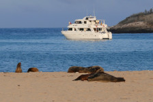 Früh morgens fahren Sie zunächst zur Nordseite der Insel. Von hier aus beginnt eine Bootstour zur Insel Seymour Norte ECAK059. Bei einem geführten Rundgang sehen Sie viele Blaufusstölpel und vor allem die balzenden Prachtfregattvögel, sowie einige Landechsen. Anschliessend geht die Bootsfahrt weiter nach Bachas oder Mosquera, beides kleine Korrallenstrände, wo genug Zeit zum Schwimmen und Schnorcheln mit den Seelöwen bleibt. Am späten Nachmittag sind Sie zurück in Ihrem Hotel in Puerto Ayora. (Je nach Wunsch und Verfügbarkeit kann die Tagestour auch zur Insel Bartolomé oder nach Plazas gehen).