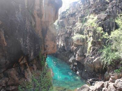 Die Felsenschlucht Las Grietas sind natürliche Pools auf der Insel Santa Cruz, 3 km vom Zentrum von Puerto Ayora entfernt. Ideal zum Schwimmen, Schnorcheln und Tauchen. Die Süß- und Salzwasserlagunen Las Grietas können entweder ebenfalls zu Fuß erkundet werden oder im Rahmen der Halbtagesbootstour „Tour de Bahia“.