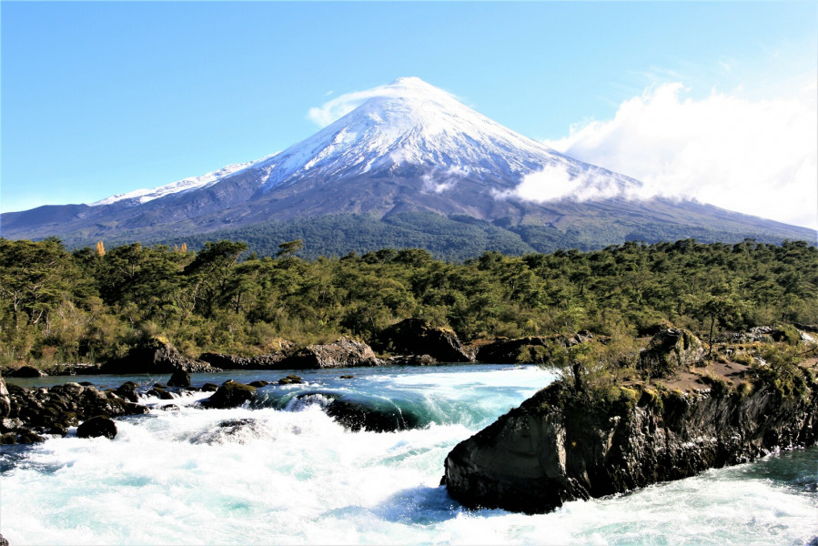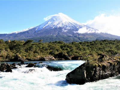 Die Wasserfälle befinden sich bei Km 55 auf der Straße von Puerto Varas nach Petrohue im Nationalpark Vicente Perez Rosales. Sie entstanden vor ca. 600 Jahren und befindet sich auf basaltischer Lava, die vom Vulkan Osorno stammt. Wenn das türkisfarbene Wasser über das schwarze Vulkangestein sprudelt - im Hintergrund bei klarem Wetter der Vulkan Osorno - ist das ein bezaubernder Anblick. Je nach Jahreszeit kann man sogar Lachse beobachten. Wer möchte, kann noch einen kleinen Spaziergang. über den Sendero Los Enamorados machen, der entlang des Rio Petrohue durch den Regenwald führt.