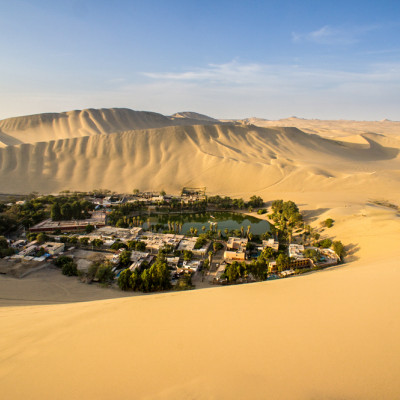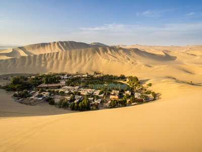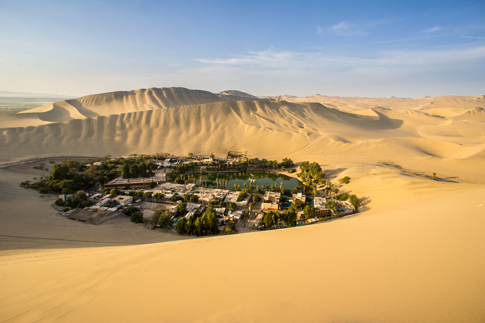 Die Oase von Huacachina ist eine Oase fünf Kilometer westlich von Ica entfernt. Sie ist umschlossen von Sanddünen von bis zu 100, Höhe. Die Oase wird von einem unterirdischen Andenfluss gespeist, der mineralhaltiges Wasser führt und sie so lange Zeit als Heilbad nutzbar machte. Sie umgibt eine üppige Vegetation von Palmen, Eukalyptus und Johannisbrotbäumen. All dies trägt dazu bei, dass Huacachina als eine der spektakulärsten und schönsten Orte der peruanischen Küste gilt.