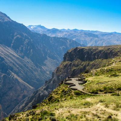 Am Aussichtspunkt Cruz del Condor - oder zu Deutsch: Kreuz des Kondors, haben Sie nicht nur eine spektakuäre Sicht auf eine der tiefsten Schluchten der Welt, sondern können mit etwas Glück auch die majestätischen Andenkondore mit ihrer Flügelspannweite von 2-3 Metern beim Gleitflug beobachten. Ein außergewöhnliches Erlebnis.