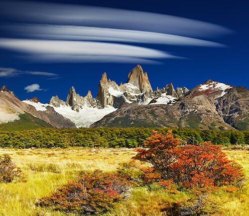 Der Fitz Roy, auch Cerro Chaltén genannt, ist ein Gebirgsmassiv im argentinischen Patagonien, der bis auf eine Höhe von über 3400 m kommt. Sein markanter Granitfels steht stolz am Ende einer wüstenähnlichen Steppe und markiert den Beginn des Campo Hielo Sur, dem riesigen undurchdringlichen Eisfeld, zwischen Argentinien und Chile.