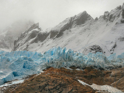 Der Perito Moreno ist Teil des patagonischen Kontinental-Eisfeldes, von dem 13 Gletscher zur Atlantikseite hinunterfließen und schließlich in die Seen Lago Viedma und Lago Argentino münden. Der Gletscher, 5km lang und bis zu 80m hoch über dem Lago Argentino thronend, ist einer der wenigen kalbenden Gletscher der Welt, der nach und nach einen Damm bildet und die Wassermassen des Flussarms Brazo Rico blockiert.