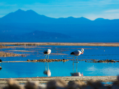Am Nachmittag unternehmen Sie einen Ausflug durch die trockene Wüstenlandschaft zum riesigen Salzsee Salar de Atacama CLAK046. Bei der Laguna Chaxa können Sie eine Vielzahl wunderschöner Flamingos beobachten.